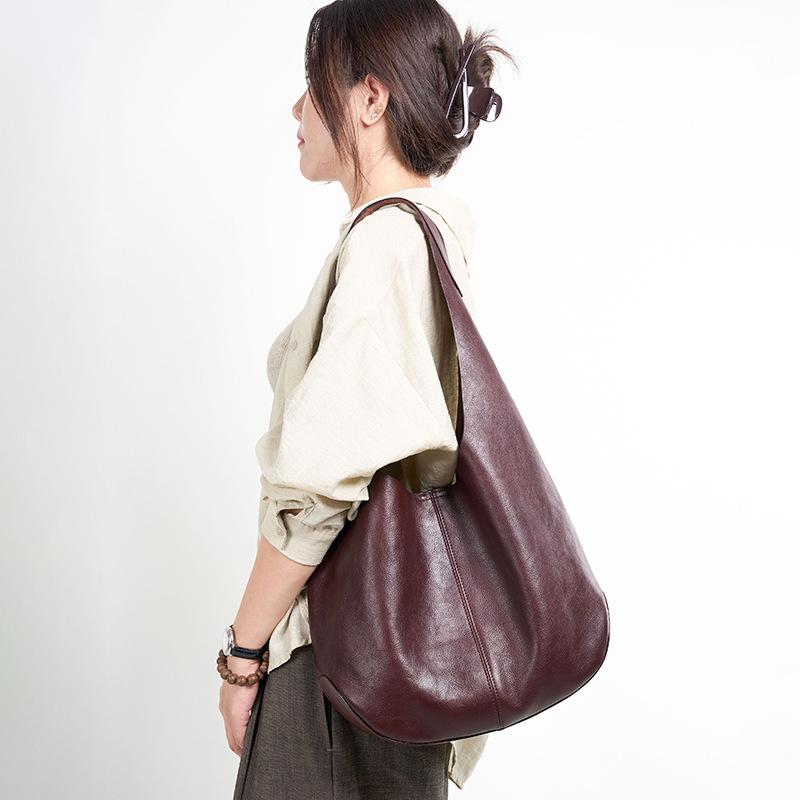 Cross-border Guangzhou First Layer Tree Paste Vegetable Tanned Cowhide Hobo Simple Large-capacity Tote Bag Premium Underarm Shoulder Bag