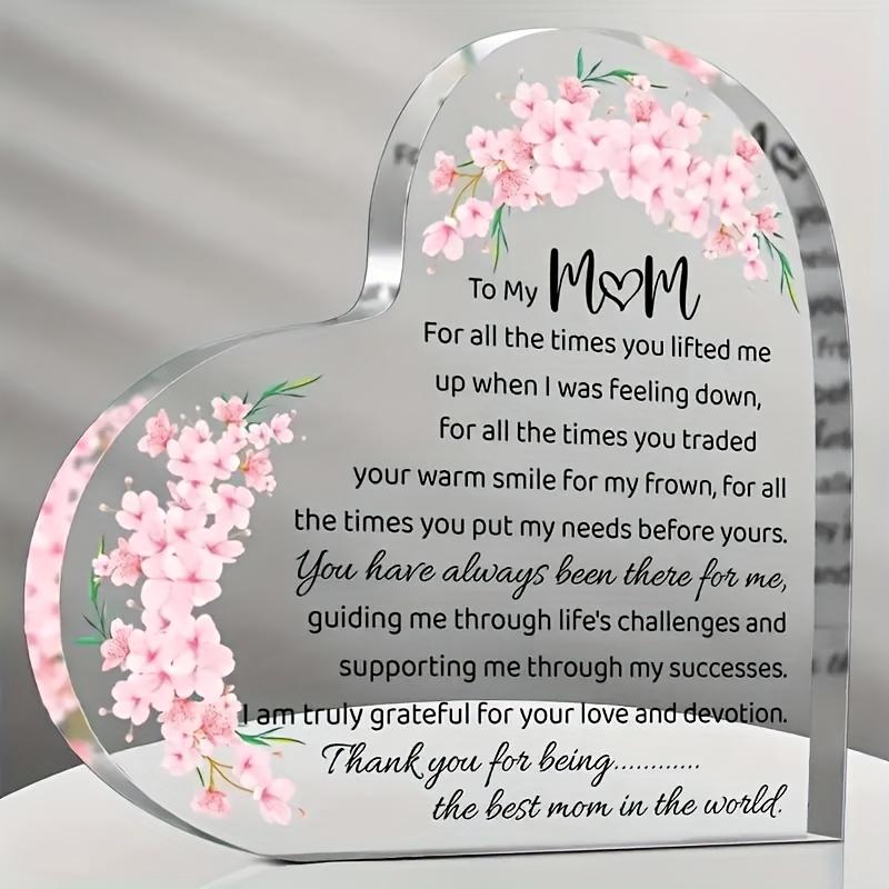 2D Flat Heart-Shaped Acrylic Mom Appreciation Desktop Decorative Plaque, Floral Design, Home Decor Plaque Hanging Wall Art Decorative Garden Decoratio