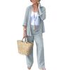 2Pcs/Set Women Casual Outfit Lapel Long Sleeve Buttons Closure Shirt High Waist Straight Wide Leg Long Pants Set Daily Wear
