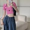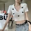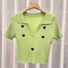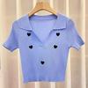 Love Print Knit Shirt Collar Short Sleeve Shirt Female Summer Thin Short Section Top Tide Casual Essential Comfort and Style Slim Fit Pullovers Tees