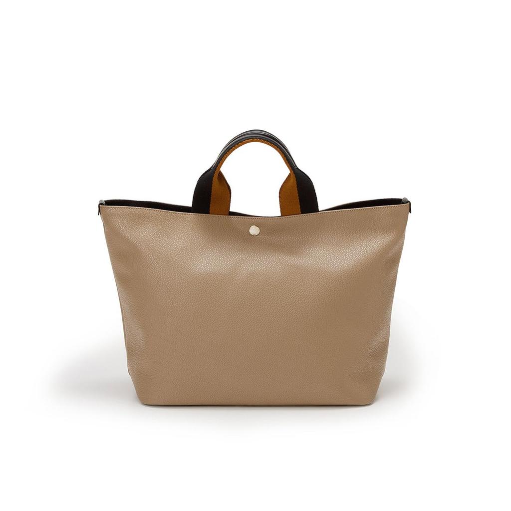 [Breath TOPKAPI] SCOTCH GRAIN Plain Two-Tone Tape Handle Tote Bag, Large, Khaki Brown
