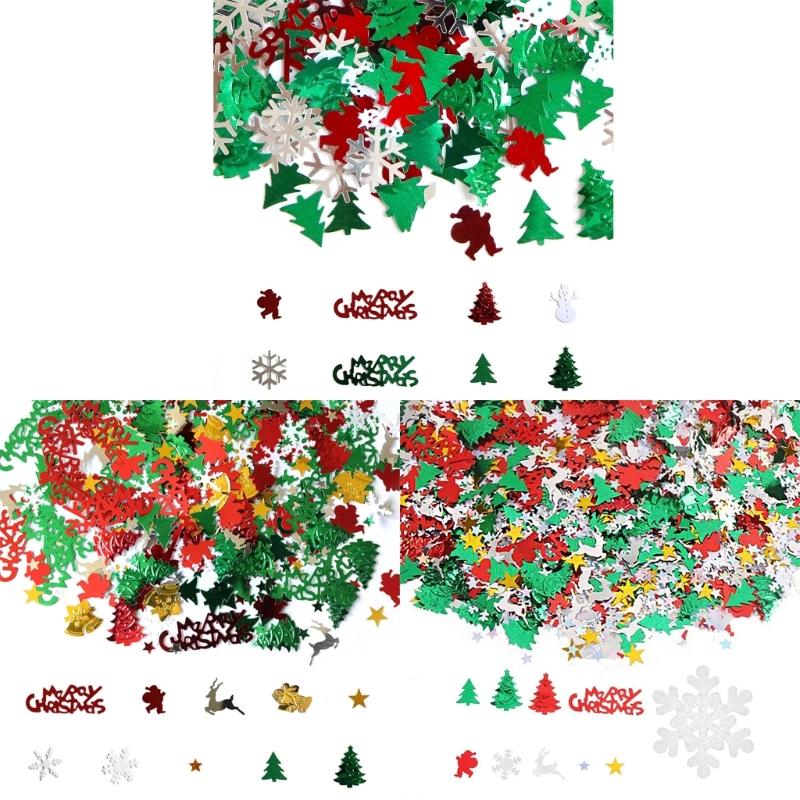 Enhances your Christmas celebration with sparkling snowflake reindeer snowman santa Christmas tree confettis that reflects dazzling light, made from plastic for long term festival charm and easy cleanup.