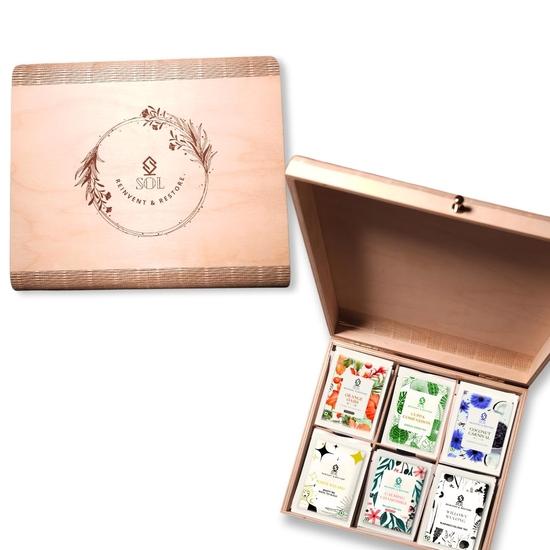 SOL Wooden Premium Green Tea Gift Box | 6 Wellness Teas | 60 Total Tea Bags | Assorted Tea Bags Gift Box | Corporate Gifting