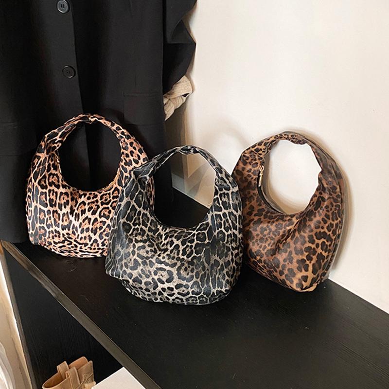 Women PU Leopard Fashion Shoulder Bag Large Capacity Circular Underarm Bag Zipper Closure Fashion Carrying Bag Chic Hobo Bag KTB