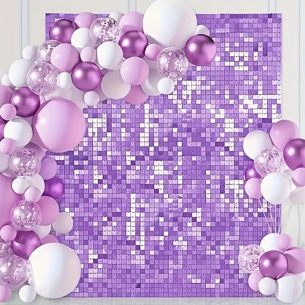 Shimmer Wall Backdrop Purple Wall Panels Square Sequin Shimmer Backdrop Decoration for Birthday Party,Wedding, Anniversary