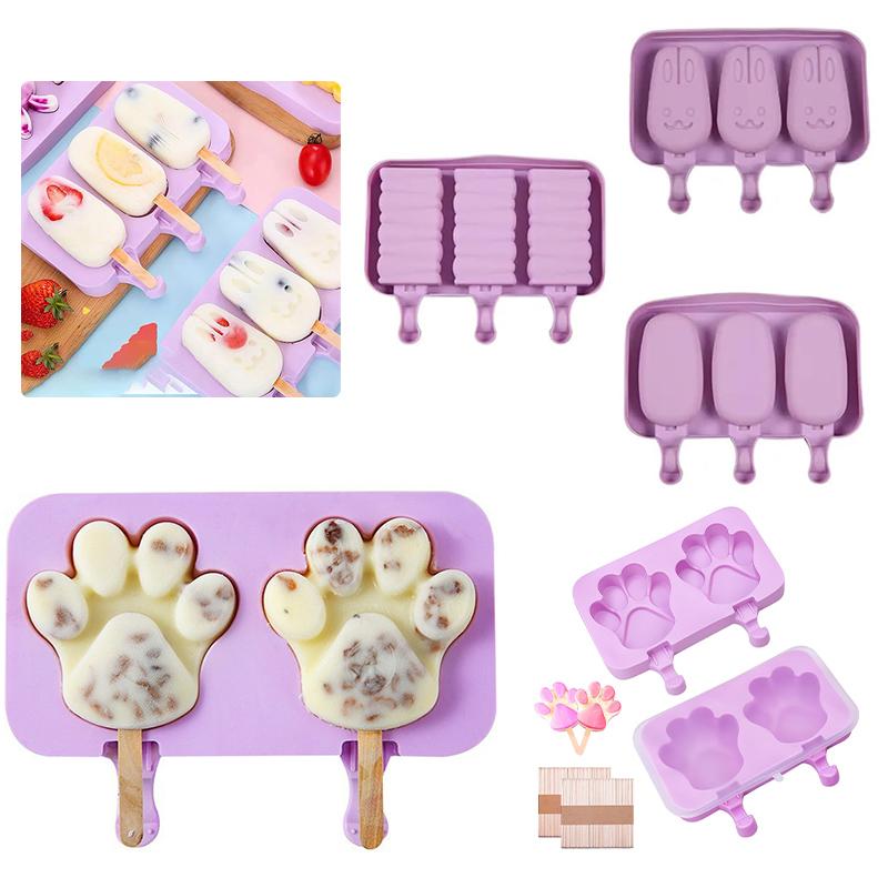 Cat Palm Mold Creative Cartoon Ice Cream Silicone Ice Cream Mold Cute Homemade Food Grade DIY Baking with Lid Easy Release Tray