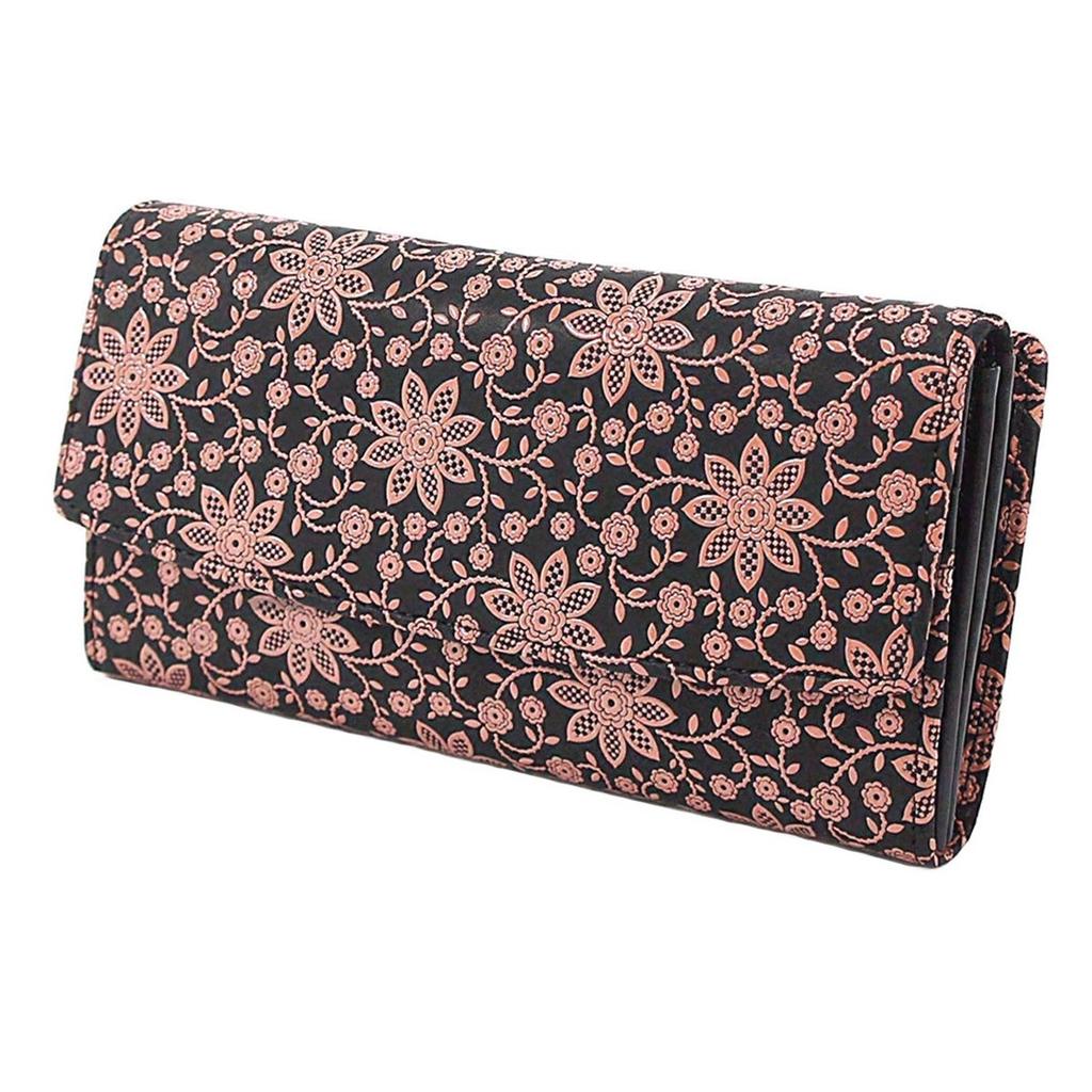 Indenya Inden Long Wallet, Large Capacity, Deerskin Leather, Black with Pink Lacquer, Clematis Pattern, 2310-51-169