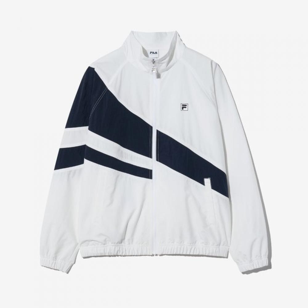 The FILA Flag Windbreaker is a sports outerwear that can be worn by both men and women. It offers a comfortable silhouette with a semi-overfit or comfort fit, and features an adjustable hem with an internal string. This jacket is designed with a mesh lining to improve breathability, making it suitable for outdoor activities in transitional seasons.