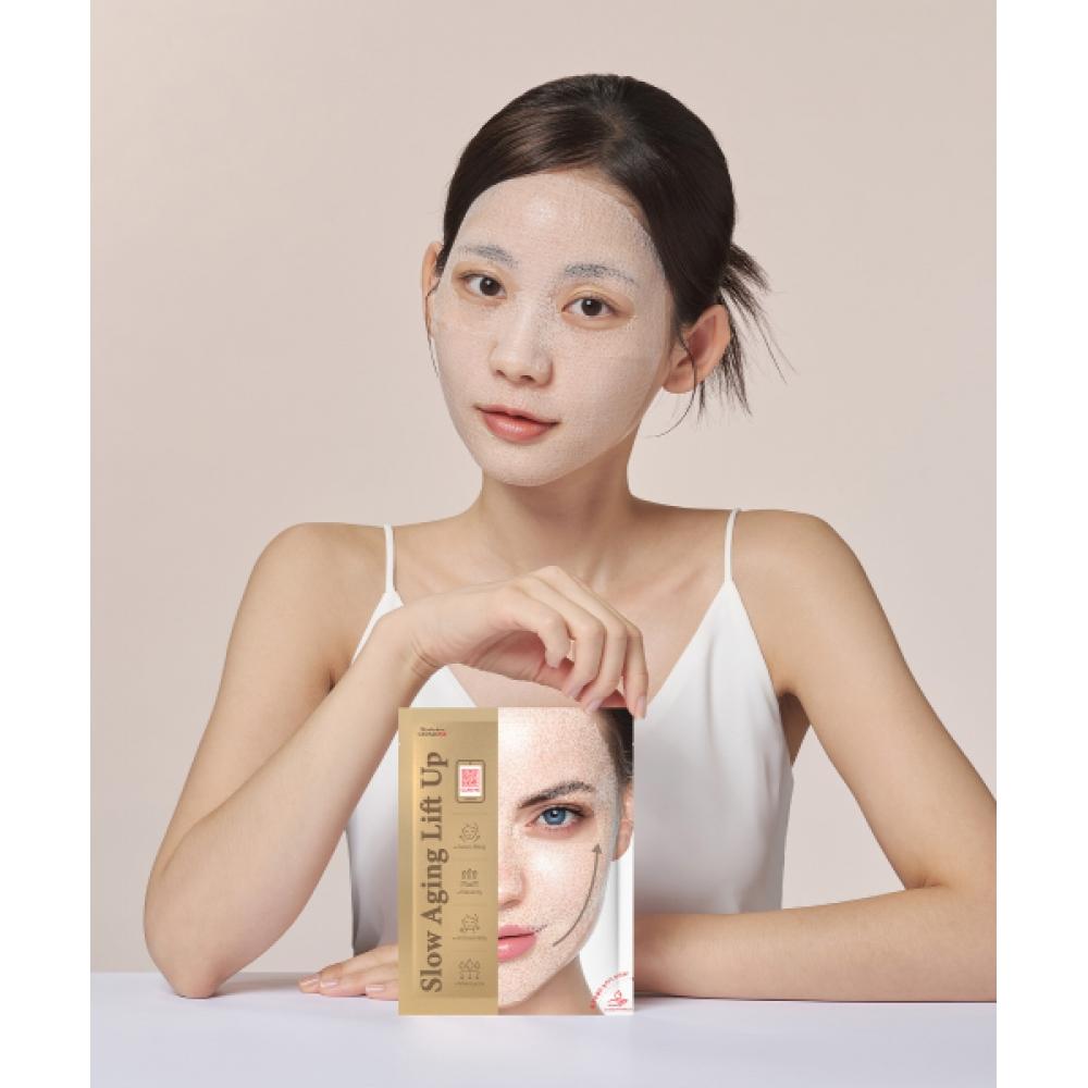 DERMAFIX Slow Aging Lift-Up Mask 1pc is a sheet mask suitable for all skin types, recognized for its whitening and anti-wrinkle functionalities. This mask combines low molecular collagen at 310 Dalton and high molecular collagen to supply moisture deep into the skin while improving elasticity and reducing wrinkles.