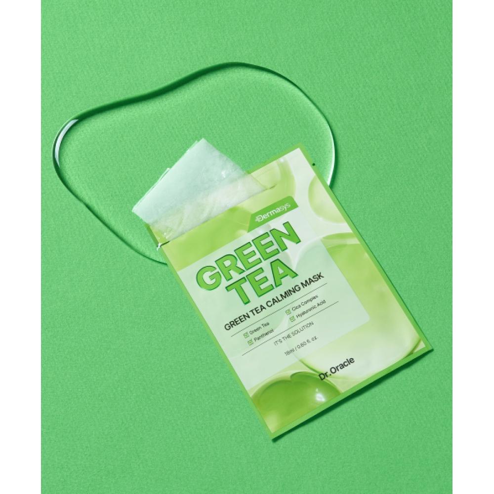 DR.ORACLE DermaSIS Green Tea Calming Mask (10 sheets/1 box) is a hydrating calming mask designed for sensitive skin. This mask contains green tea extract, panthenol, Cica complex, and hyaluronic acid complex that provide deep moisture and calming effects for the skin. The cellulose sheet adheres gently to the skin and maintains moisture with an adequate amount of essence, making it ideal for use after exercise or when the skin is irritated.
