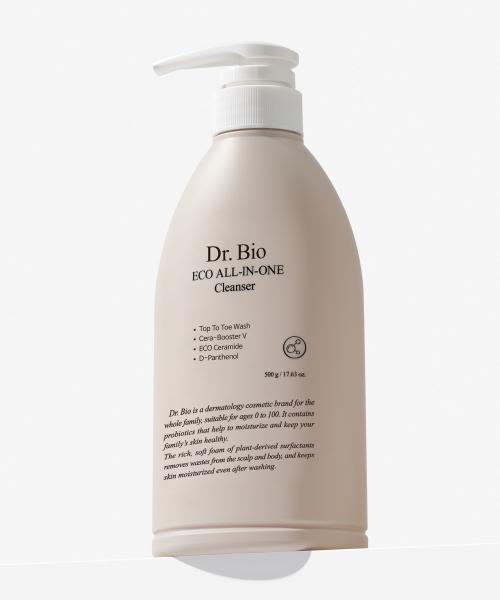 DR.BIO Eco All-in-One Cleanser 500g is an all-in-one product that allows for body cleansing from head to toe. This cleanser combines shampoo, foam cleansing, and body wash features into one, making it suitable for all skin types and ensuring moisture retention post-usage. It is a low-irritant cleanser that the whole family can use.