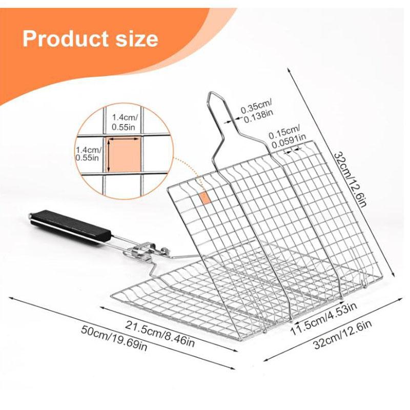 Large Capacity Flat BBQ Grill Basket Mesh Cage Grill With Secure Locking Handle