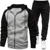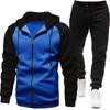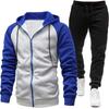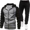 Men Clothes Jacket + Black Sports Pants For Autumn And Winter, Color-Blocked, Fashion Long Sleeve Casual Sweatshirt Set