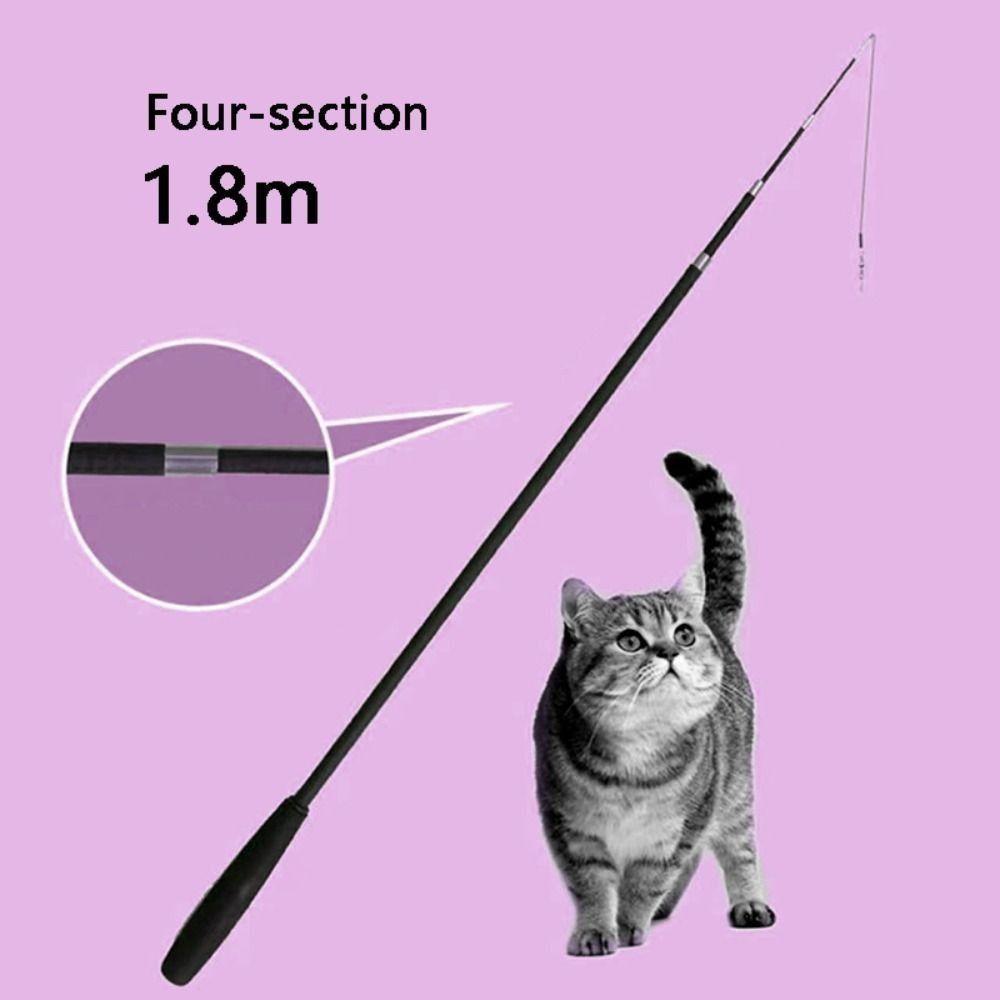 1.8m Fishing Pole Wand Four-section Cat Interactive Stick Replacement Head Cat Teaser Stick Kitten