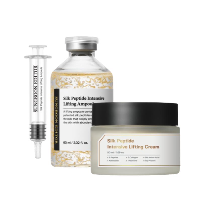 This premium firming duo set combines a concentrated silk peptide ampoule with an intensive lifting cream to maximize elasticity and skin-tightening effects. Formulated with silk extract and multi-peptide complexes, the ampoule helps improve skin density and smooth fine lines, while the rich lifting cream locks in moisture and enhances firmness. Together, they create a powerful double-layer lifting system for a visibly firmer, plumper, and more youthful complexion. Ideal for daily anti-aging care and intensive elasticity treatment.
