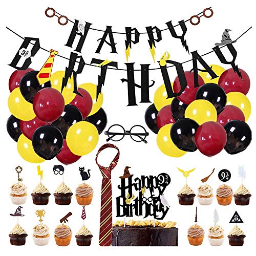 Harry Potter Birthday Decorations Party Set, Magic, Cool, Fun, Cute, 3 Unique Decorations for Kids and Boys, Black, Red, and Yellow, Harry Potter Happ