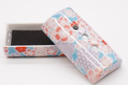Horizontal Cylindrical Incense Burner: For Horizontal Incense Sticks. Made In Japan by Mino Ware. Established In 1820 by Eirakuya. (Sakura Komon Patte