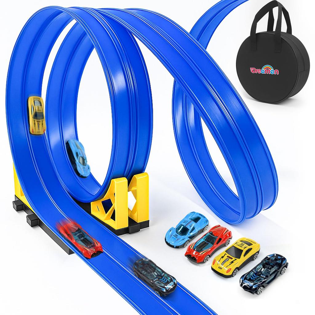 【Race Track for Ages 3-6】 The race track comes in a storage bag for easy transport and cleanup. It's a perfect gift for birthdays, holidays, and any other occasion. An ideal surprise for car-loving children aged 3, 4, 5, 6, 7, and 8.