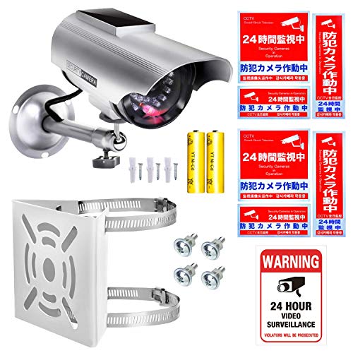 Dummy Security Camera [Please note: Real security cameras (box-type) often have flashing red LEDs and plastic arms!] ✅ [Enhanced durability and realism!] We've cost-effectively replaced the flashing LED and plastic bracket (which are easily identified as plastic when viewed from below) with the thinner, constantly lit LED and high-quality, lightweight steel construction commonly found in real security cameras. ✅ [Solar Powered + Two Included Batteries = 24-Hour Continuous Use] The solar panel uses a monocrystalline silicon panel for superior power generation efficiency and durability. By illuminating the LED during the day and storing power in the included rechargeable battery, 24-hour continuous use is possible, including at night. There's no need to worry about the cost of [sold separately]. ✅ [Waterproof + Easy Battery Replacement] We've carefully designed the product to provide water resistance under eaves while allowing for easy battery replacement without the need for tools. ✅ [Equipped with the Latest LED] The light-emitting element uses a long-life red LED. ✅ [Realistic Cable] The cable is the same as the one used in real cameras.