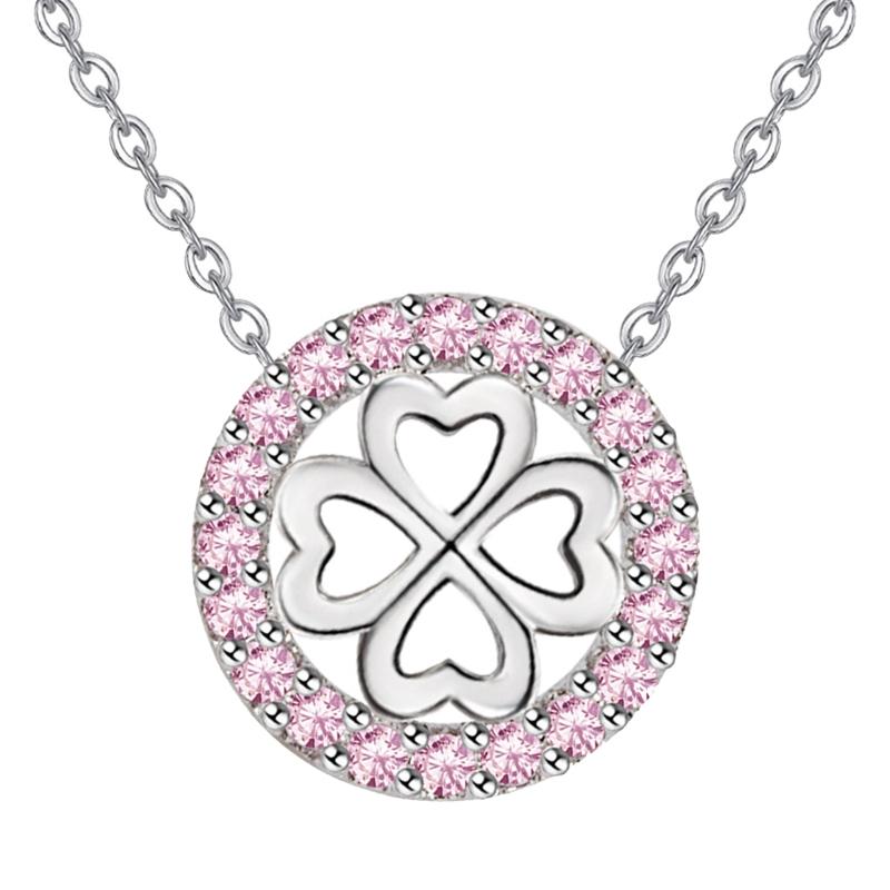 Ladies Fashion Jewelry High Quality White Pink Crystal Zircon Flower Leaf Pendant Four-leaf Clover Necklace Jewelry