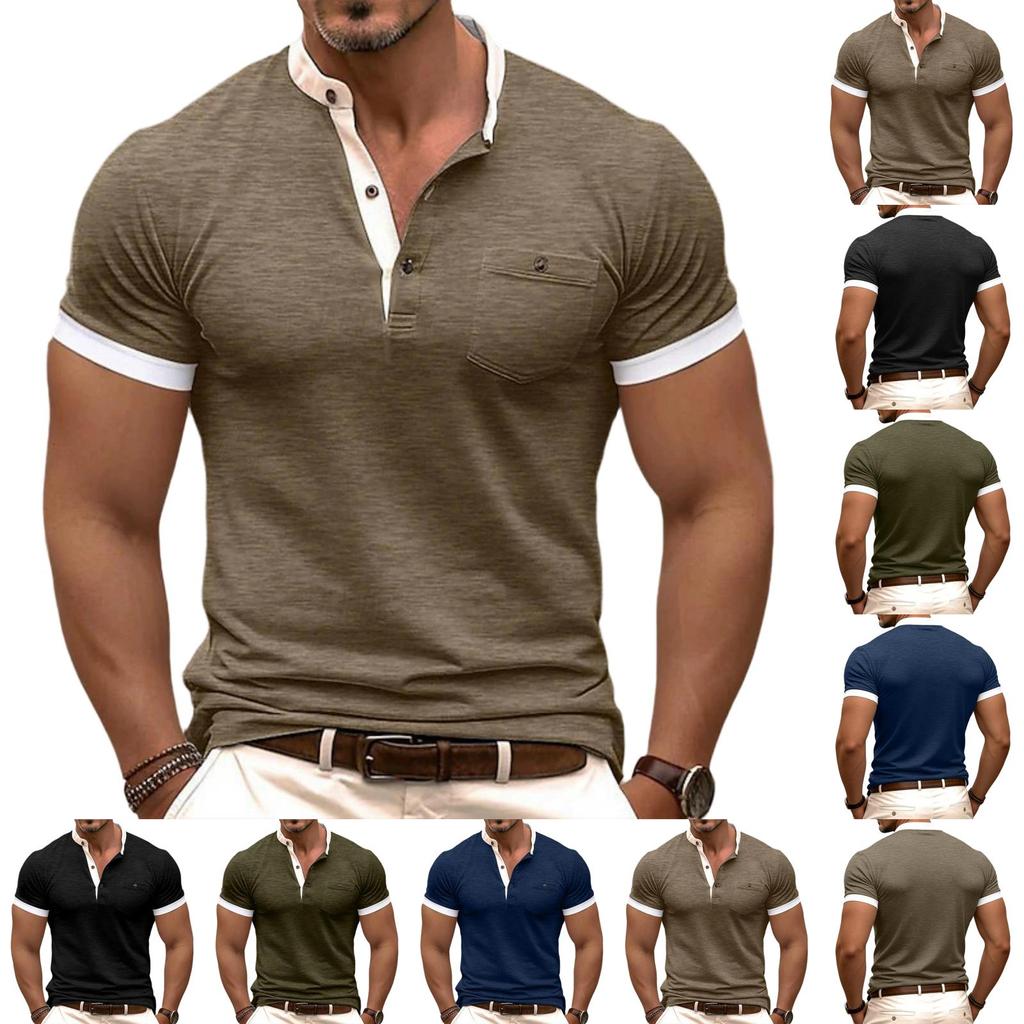 Men's Fashionable Casual Multi-color Short-sleeved Shirt Men's Loose And Comfortable Stand-up Collar Top