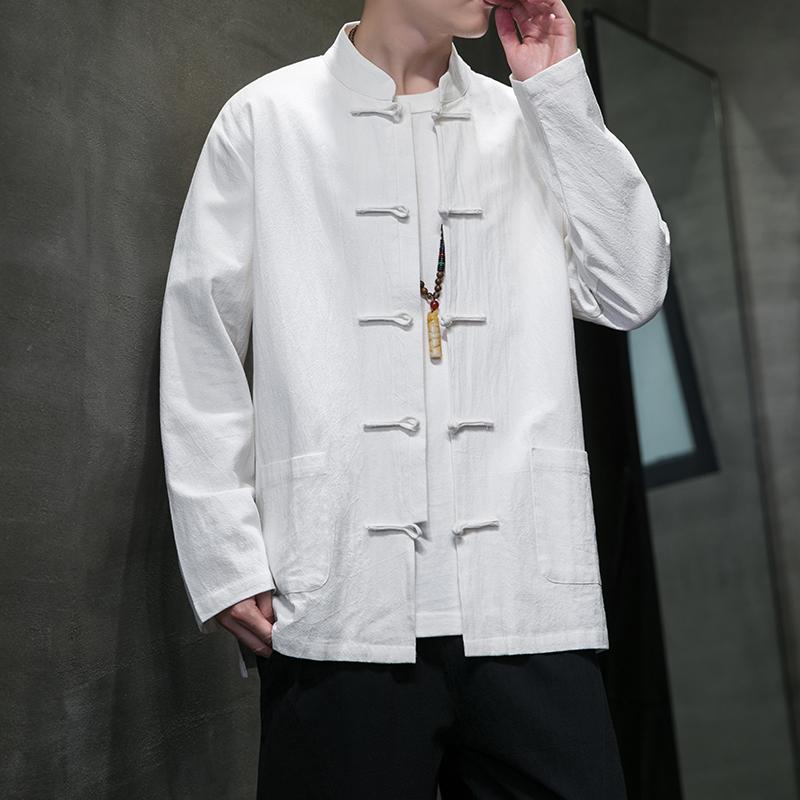 Spring and Autumn Chinese Shirt Man Cotton Linen Tang Suit Top Long Sleeve Kung Fu Shirt Traditional Men Blouses
