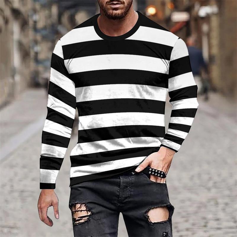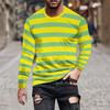 3D Printed Striped Splicing T Shirt For Men Colorful Pattern Tees Autumn Casual Round Neck Tops Loose Long Sleeve T-Shirts