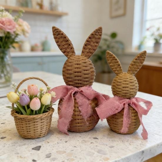 Premium Resin Construction With Textured Craftsmanship: Crafted from durable resin, this bunny ornament features a finely detailed rattan effect that mimics natural woven textures. The lightweight design ensures easy handling and cleaning, while the sturdy base provides stable display on any flat surface, making it both practical and visually appealing for long-term use.