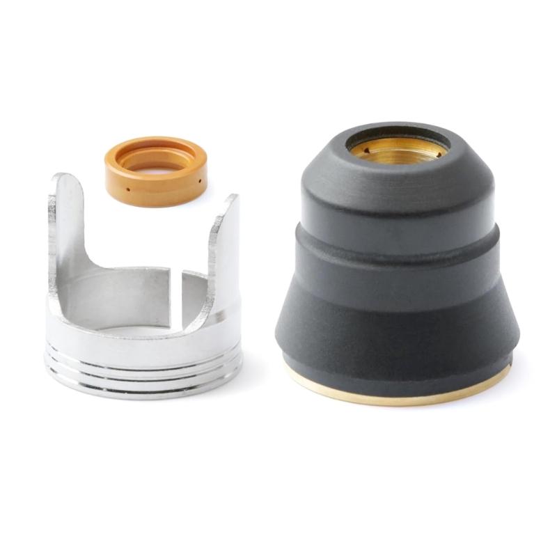 This multi compatibility nozzle set features exact dimensional replication of OEM parts (56255/58895), guaranteeing leak proof gas flows and stable amperage transfer for plasmas trimmer up to 65A applications.