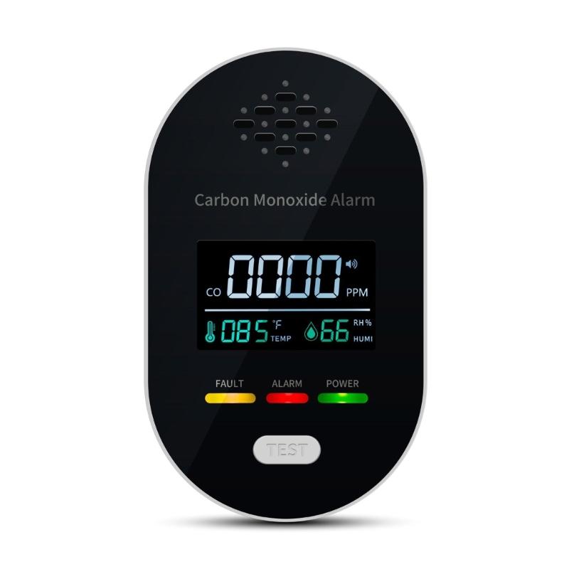 This small CO detectors with large screen continuously monitors carbon monoxide levels, temperature, and moisture for comprehensive home safety.