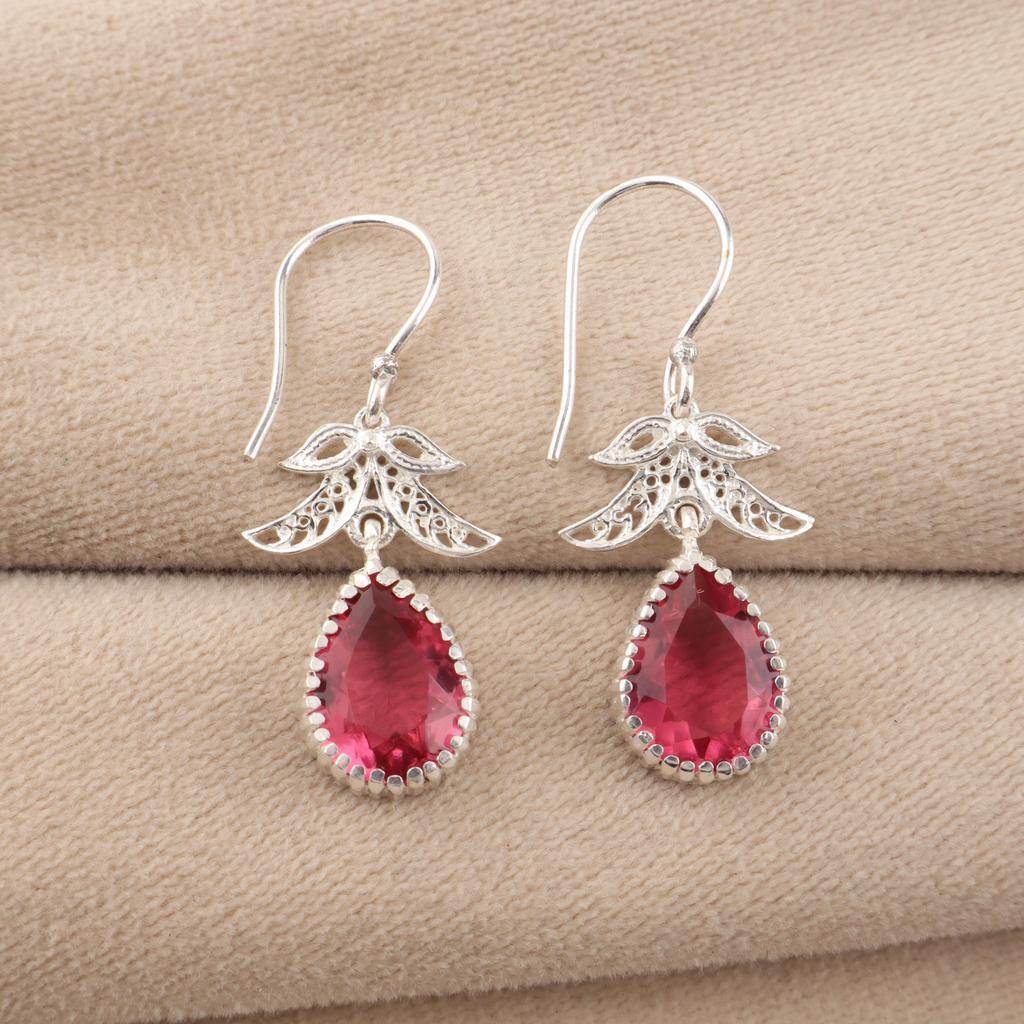 Pink Tourmaline Gemstone 925 Sterling Silver Dangle Earrings For Women 1.84" CE-27-2