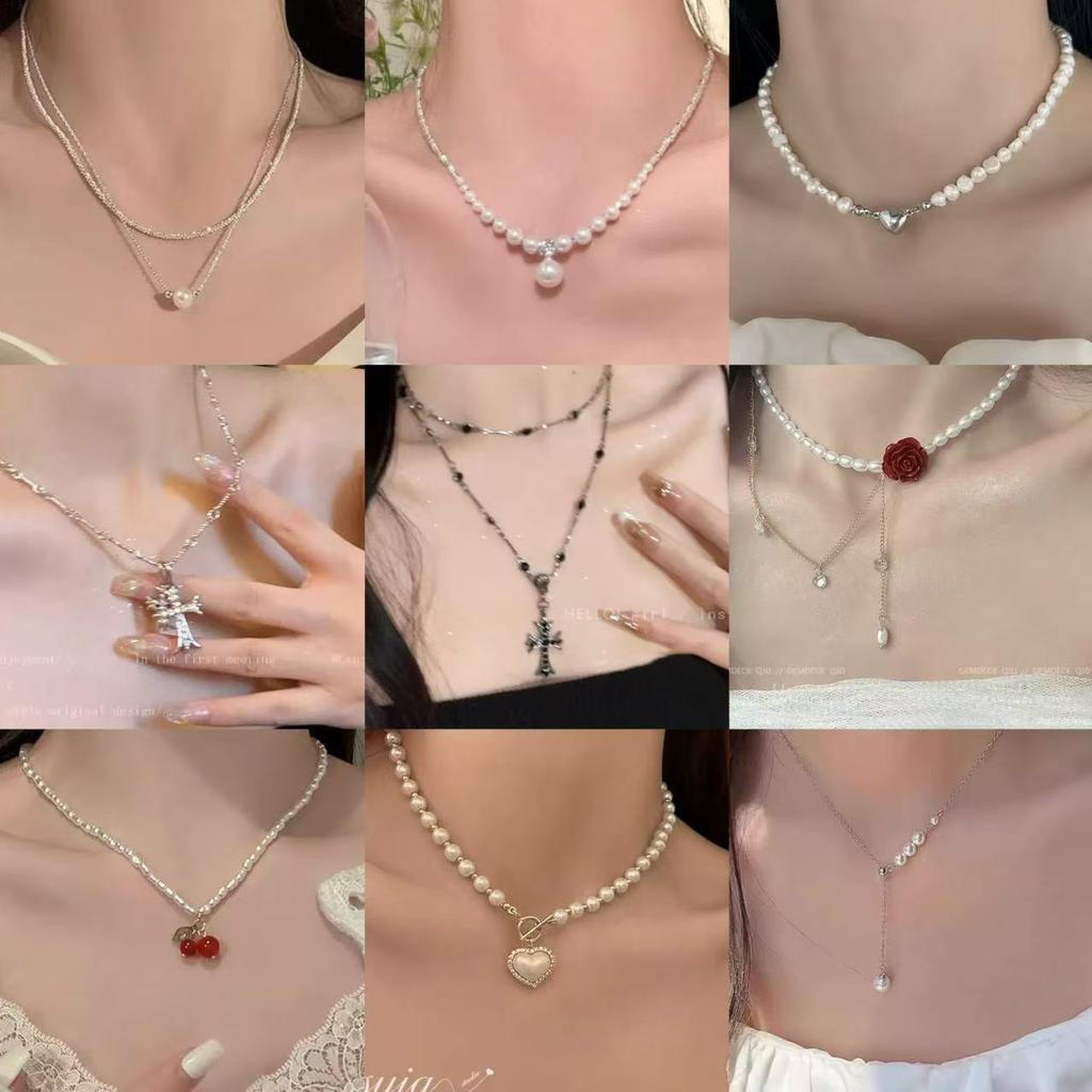 Pearl Love Necklace Small Design High Sense Simple Temperament Clavicle Chain Women's Bow Light Luxury Exquisite Neck Chain Tide