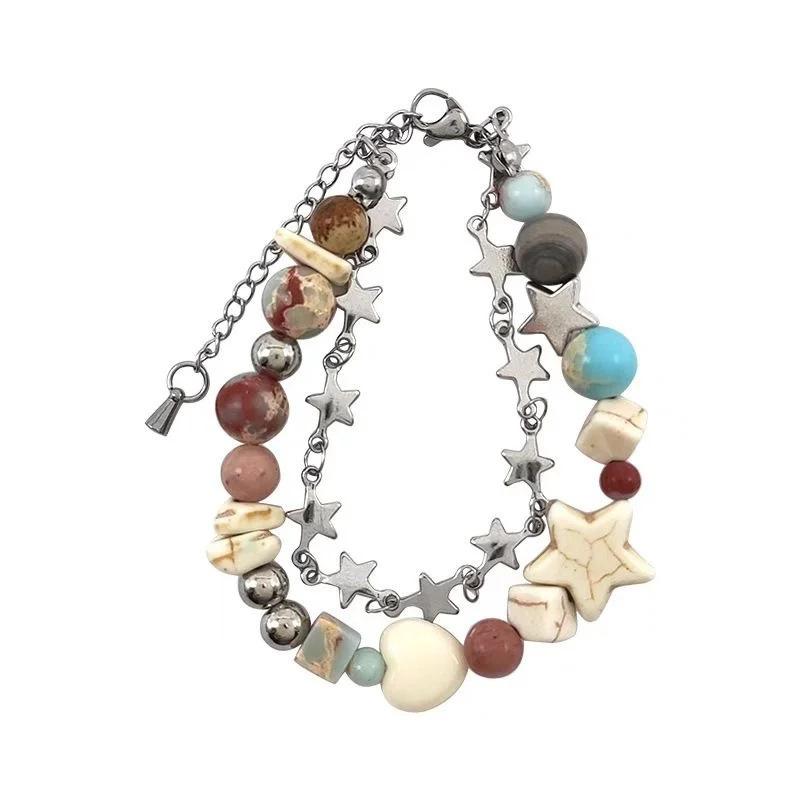 Gentle Universe, Original Handmade Cream Color Scheme Double Star Bracelet Niche Design Girl Natural Stone Beads