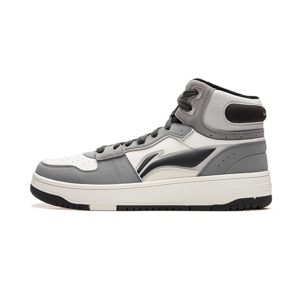 Li Ning Tianji Soft HI Slip Resistant Abrasion Resistant Mid Top Skateboard Shoes Men's White Gray AGCU367-9