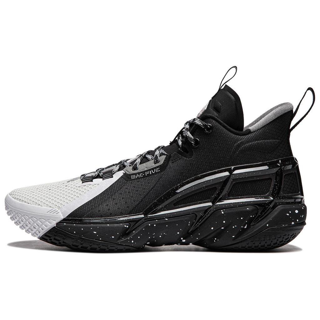 Li Ning BadFive 4 Cushioning Abrasion Resistant Breathable Mid Top Basketball Shoes Men's Black White ABFU015-5