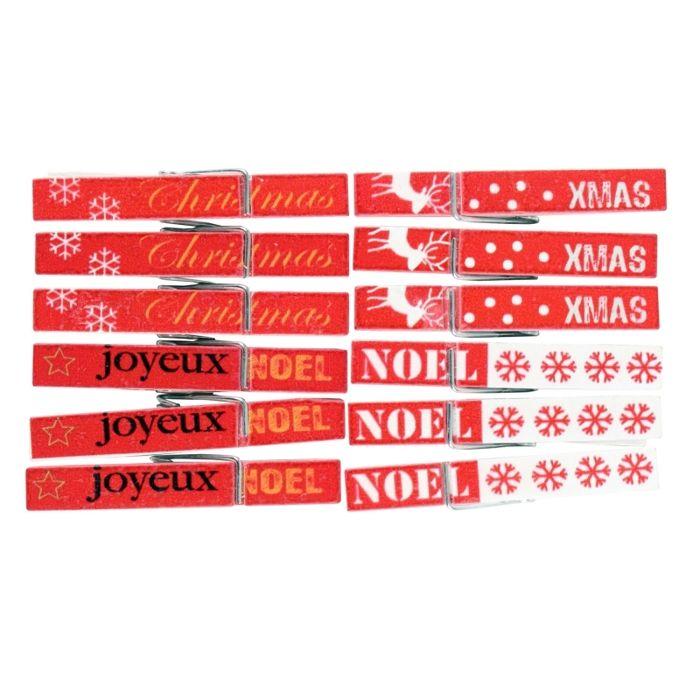 Pince à linge en bois Message de Noël 4,5cm 12 pièces