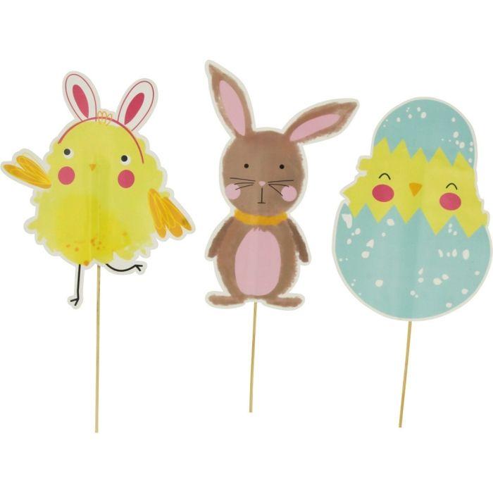 Déco sur pic Animaux de Pâques pour chasse aux oeufs 6 pièces