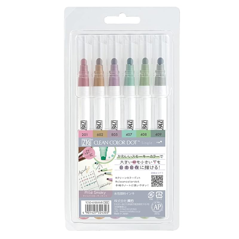 Kuretake Water-Based Pen ZIG Clean Color Dot Single Mild Smoky Set TCSD-6100/6VB
