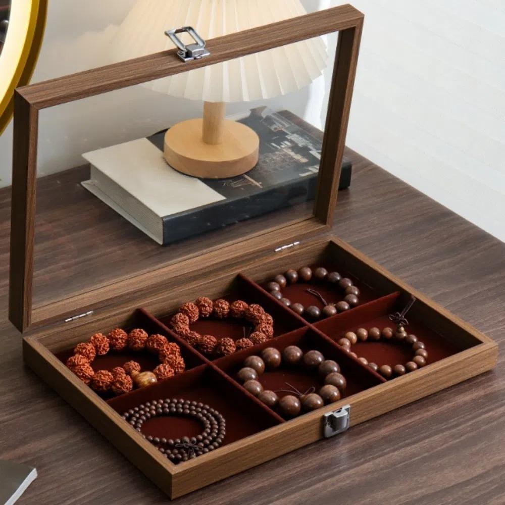 Dust-proof Wooden Jewelry Tray Velvet Jewelry Holder Case Jewelry Storage Box Jewelry Storage