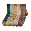 5Pairs Patchwork Checkered Cotton Socks Elastic Grids Socks Cozy Women Tube Sock Gift