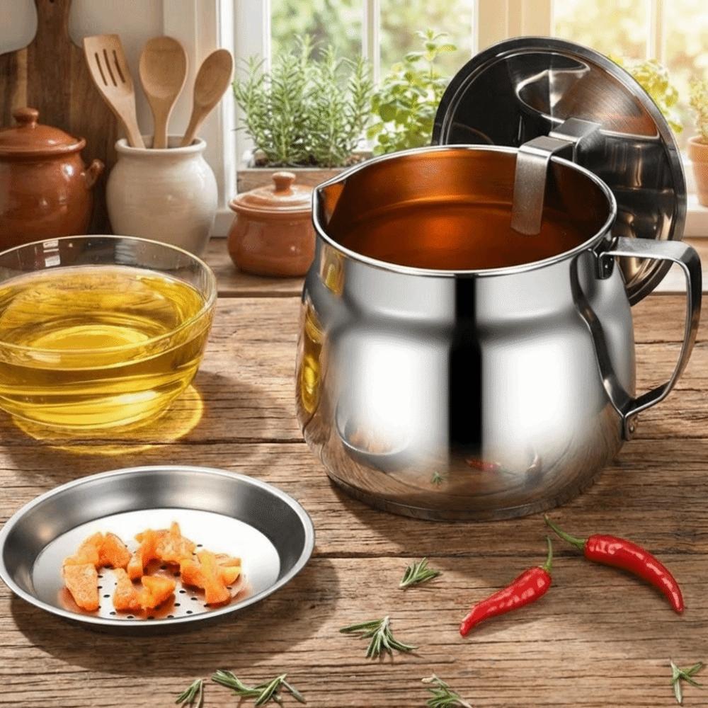 With Strainer Filter Oil Pitcher 1.5/2L Grease Container Stainless Steel Oil Kettle Restaurant