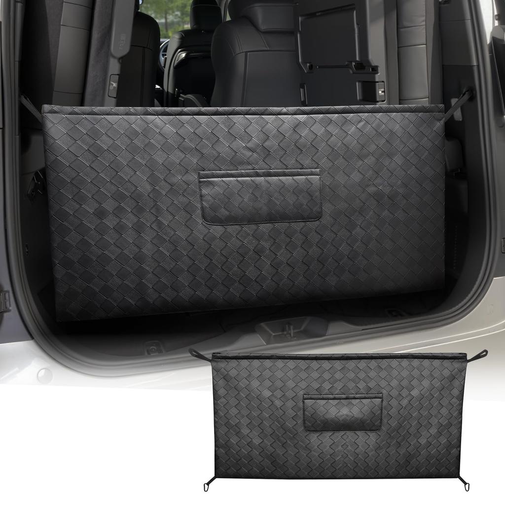 3. [Multifunctional, Large-Capacity Storage | Protection, Concealment, and Fall Prevention] The combination of large and small pockets makes it easy to organize your luggage by type. Once installed, it not only prevents scratches on the interior of the luggage compartment caused by uneven loading while driving, but also effectively prevents luggage from falling when opening and closing the back door. It also serves as a concealer, making the luggage less visible from the outside. Furthermore, it can also be used as a bumper protection cover when loading and unloading heavy items, making it a highly practical, multifunctional storage bag.