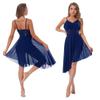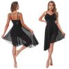 Women Lyrical Modern Dance Dress Sequin Asymmetrical Hem Leotard Skating Performance Costume