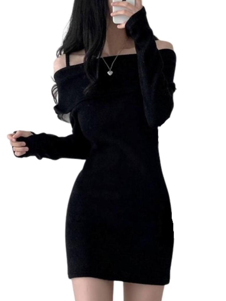 This off-the-shoulder knit mini dress exudes elegant charm and sophisticated sexiness. The chic off-the-shoulder design exudes a sophisticated allure, while the straps flatter the shoulders while providing stability while wearing it. This dress is perfect for modern women who want both ease of movement and a stylish look, with attention to detail. It's not just visually appealing, but also functional, making it stress-free to wear for long periods of time. Plus sizes are available, providing a wide range of options to fit everyone.