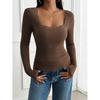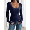 Spring/Summer Solid Color Top for Women Casual Slim Fit Ribbed U-Neck Lace Long-Sleeve T-Shirt