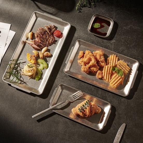 Stainless Steel Serving Plate Large Camping Rectangular Platter with Handles Countertop Decorative Tray for Party Buffet Appetizers Kitchen Organizer