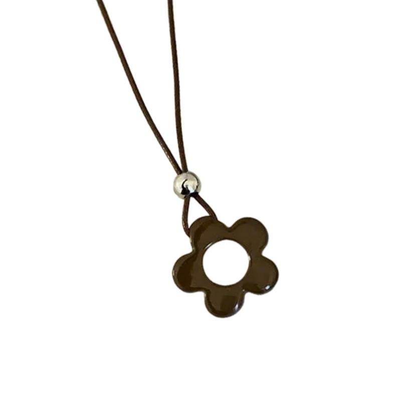 Delicate Long Leather Cord Necklace with Intricate Flower Charm Ideal for Fashion Forward Women Seeking Unique Accessories
