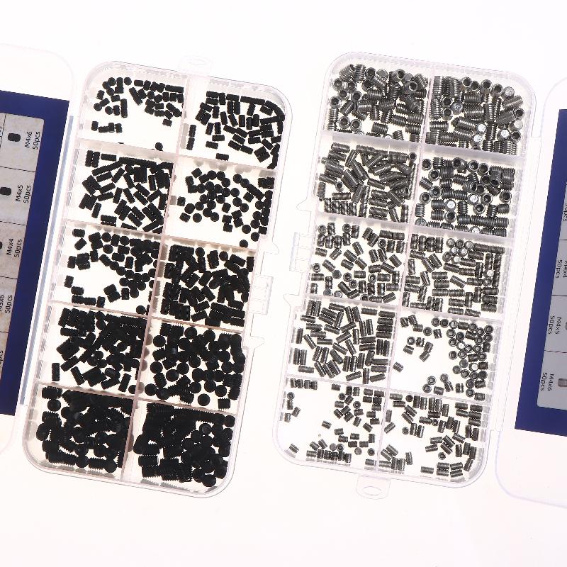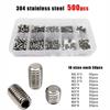 500pcs M2.5 M3 M4 DIN913 304 Stainless Steel Black Hex Hexagon Socket Allen Flat Point Grub Bolt Set Screw Kit Box