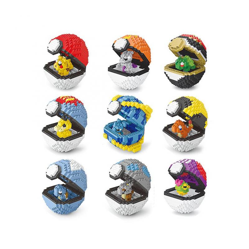 Pokemon Building Blocks Poke Ball Pikachu Bricks Anime Mini Action Figures Heads Assembly Educational Kids Toys Birthday Gift