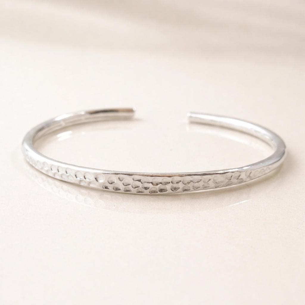 Hammered 925 Sterling Silver Cuff – Minimalist Open Bangle – Handmade Textured Bracelet